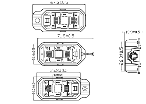 防火等級 / Flame class UL94-V0 5VA | 可選連接器/Optional Connector CD2, EVO2,MC4 |